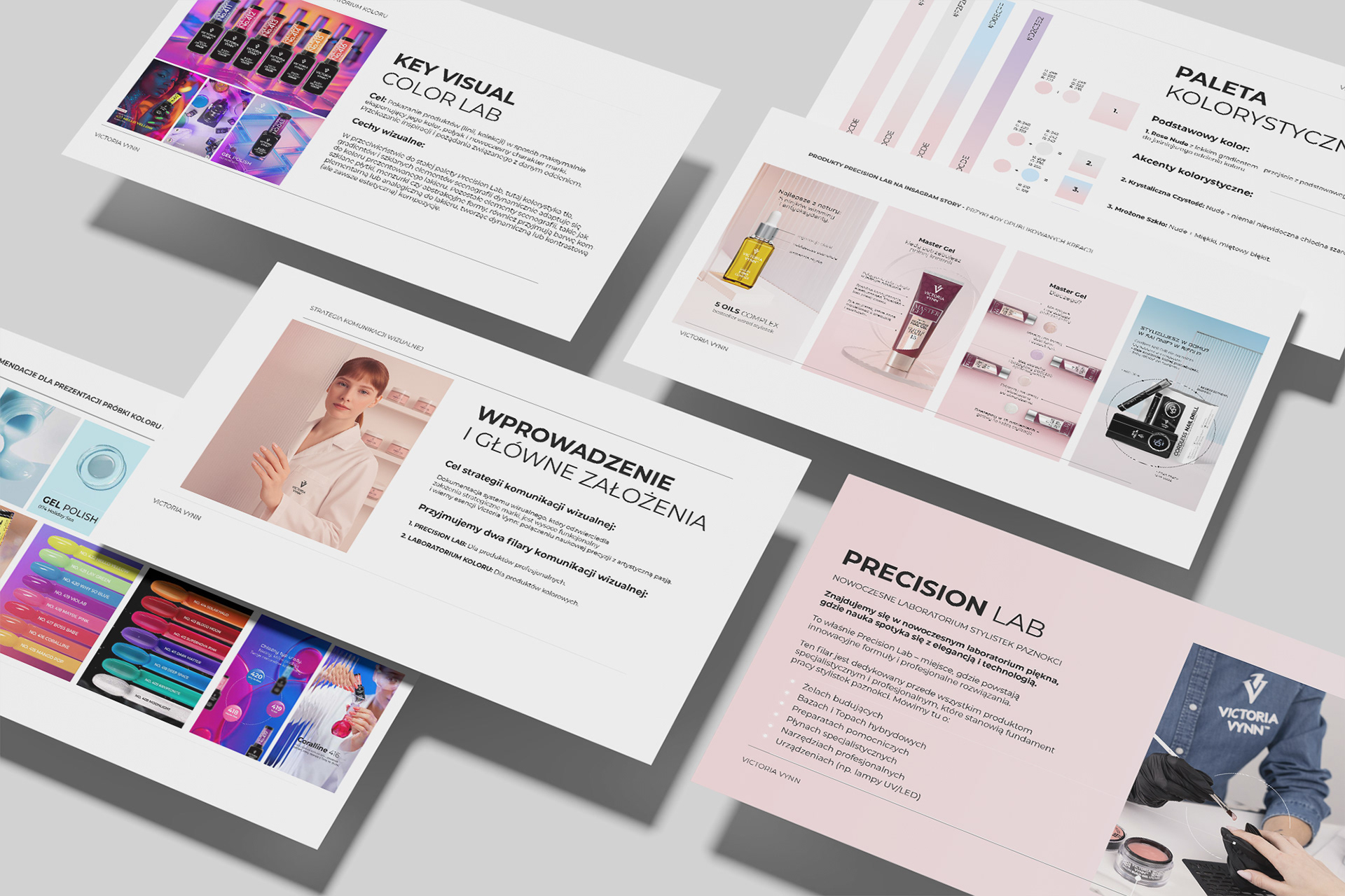 Zakres projektu: Nazwa, Tone of voice i master layout dla nowoczesnego Laboratorium Stylistek Paznokci. Komunikacja produktów profesjonalnych (żeli budujących, baz, topów, preparatów specjalistycznych, narzędzi, urządzeń) z naciskiem na naukową precyzję, innowacyjność i technologię. Estetyka nowoczesnego laboratorium piękna, łączącego naukę z elegancją.