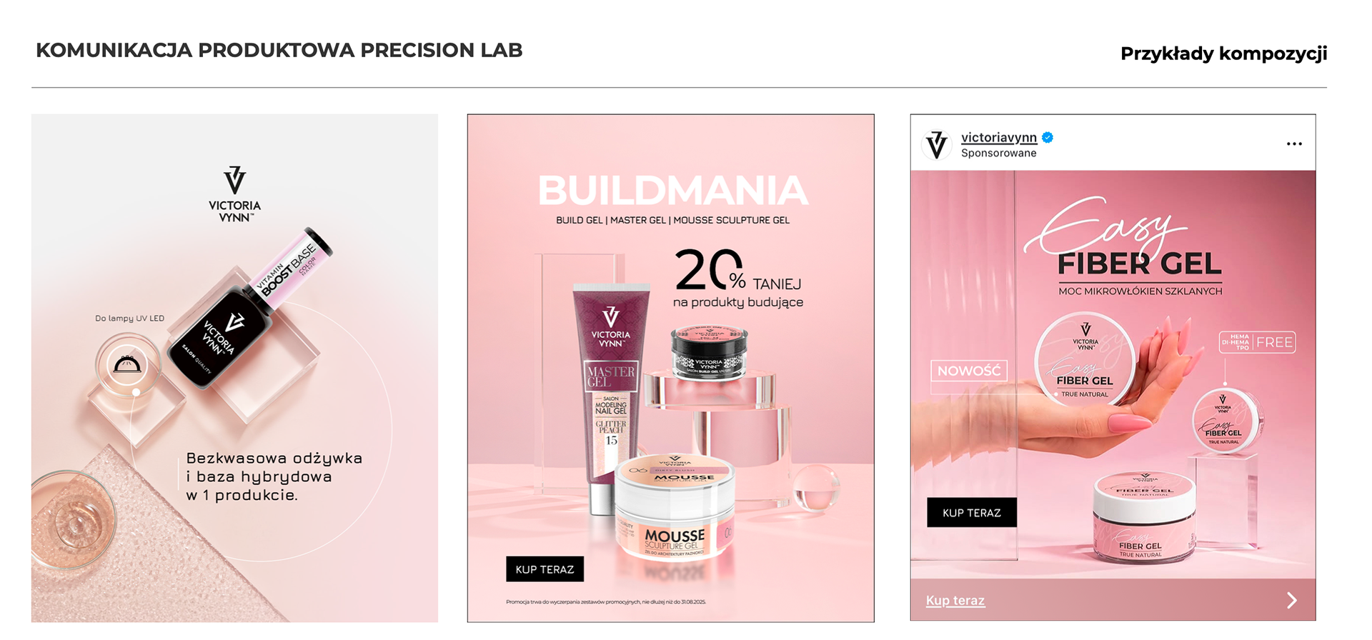 W oparciu o dokumentację strategii marki i w odpowiedzi na potrzebę komunikacji dwóch typów produktów: budujących i kolorowych, stworzyłem szczegółowy manual komunikacji Victorii Vynn na social media.